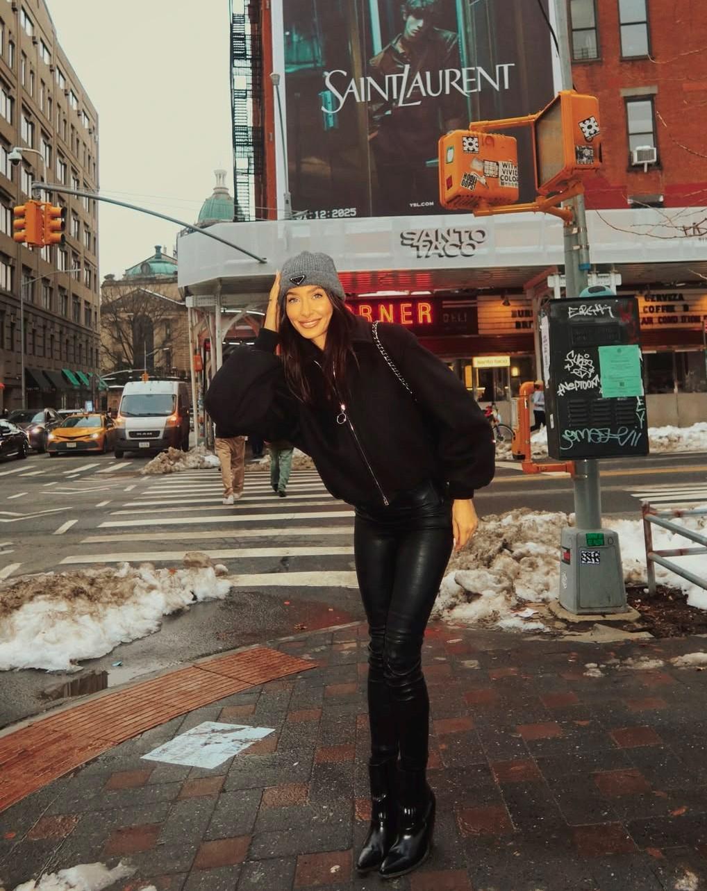 Опакована в дебела шуба, щерката на покойния Фатик обиколи заснежените нюйоркски улици, които просто кипят от енергия.