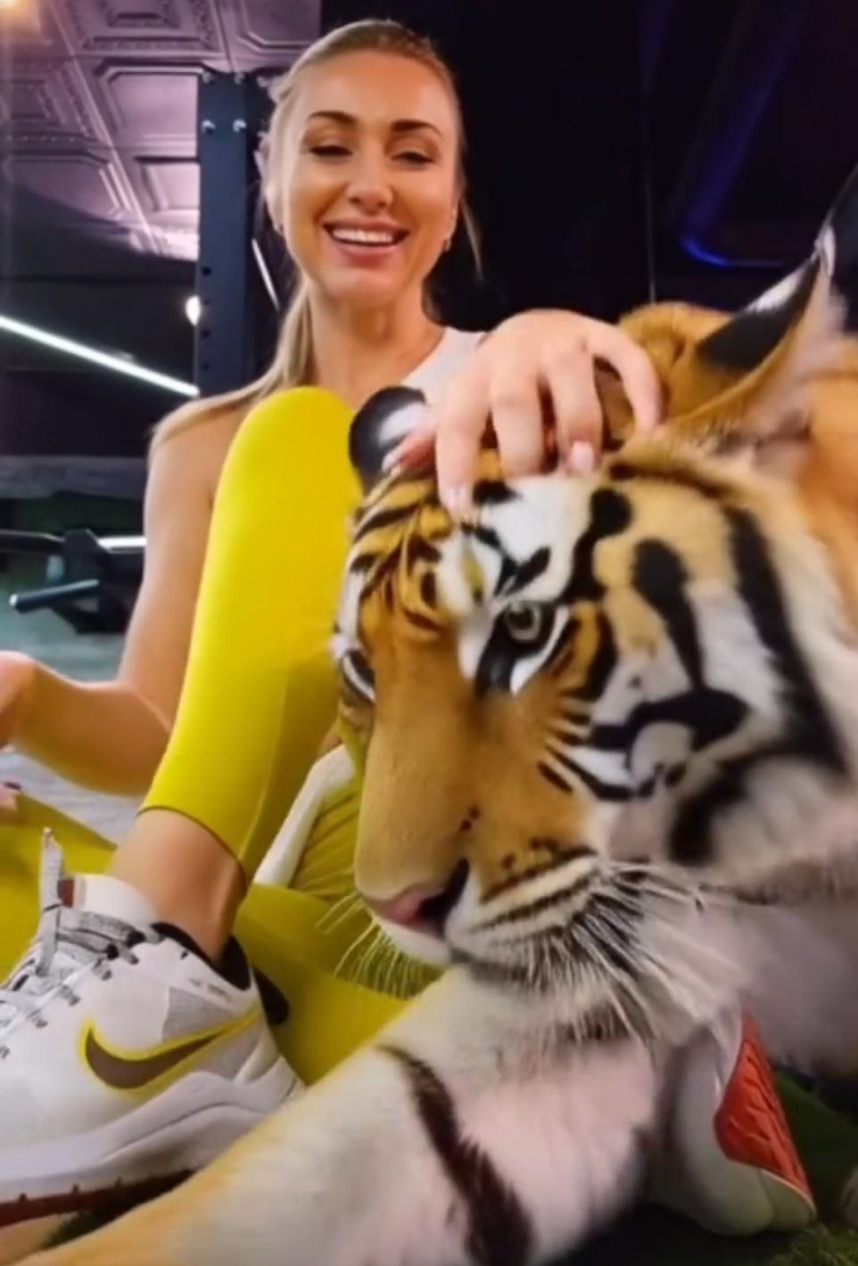 Във видеото Галя е приседнала по спортен екип, а тигърът е положил глава в скута й и се умилква като коте. А певицата без страх и с влюбена усмивка го гали нежно по главата.