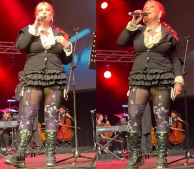 Понаедрялата от години изпълнителка Милена Славова се появи пред препълнена зала в ултракъса черна пола с къдрици, която приличаше на колан, а не на дреха, пише Ретро.