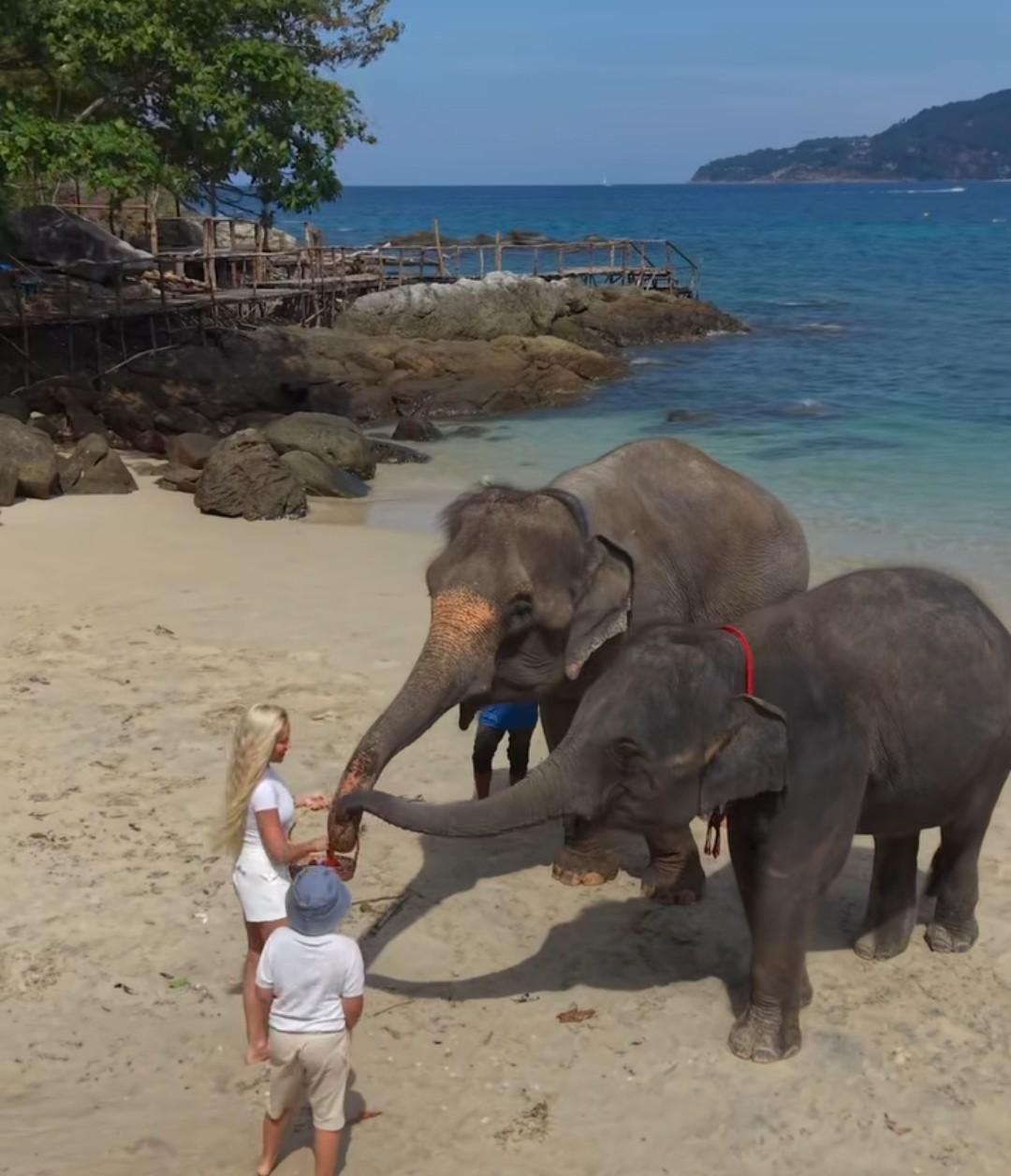 Единствената българка, която представи страната ни на двата най-големи конкурса за красота „Мис Свят" и „Мис Вселена" - Венета Кръстева, нахрани сладки слончета на остров Пукет заедно със сина си, пише България Днес.