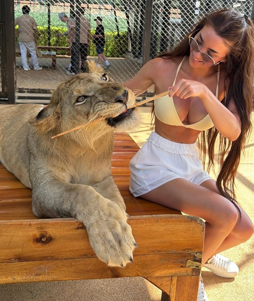 Фолкпевицата Ceлина отиде в Тайланд и се зае да играе с тигри, лъвове и други големи котки в местна зоологическа градина, пише Телеграф. Там срещу заплащане всеки може да влезе в клетката на лъвовете, тигрите, гепардите и под вещото наблюдение на специалист да ги дърпа за опашките или да си поиграе с малките животни.