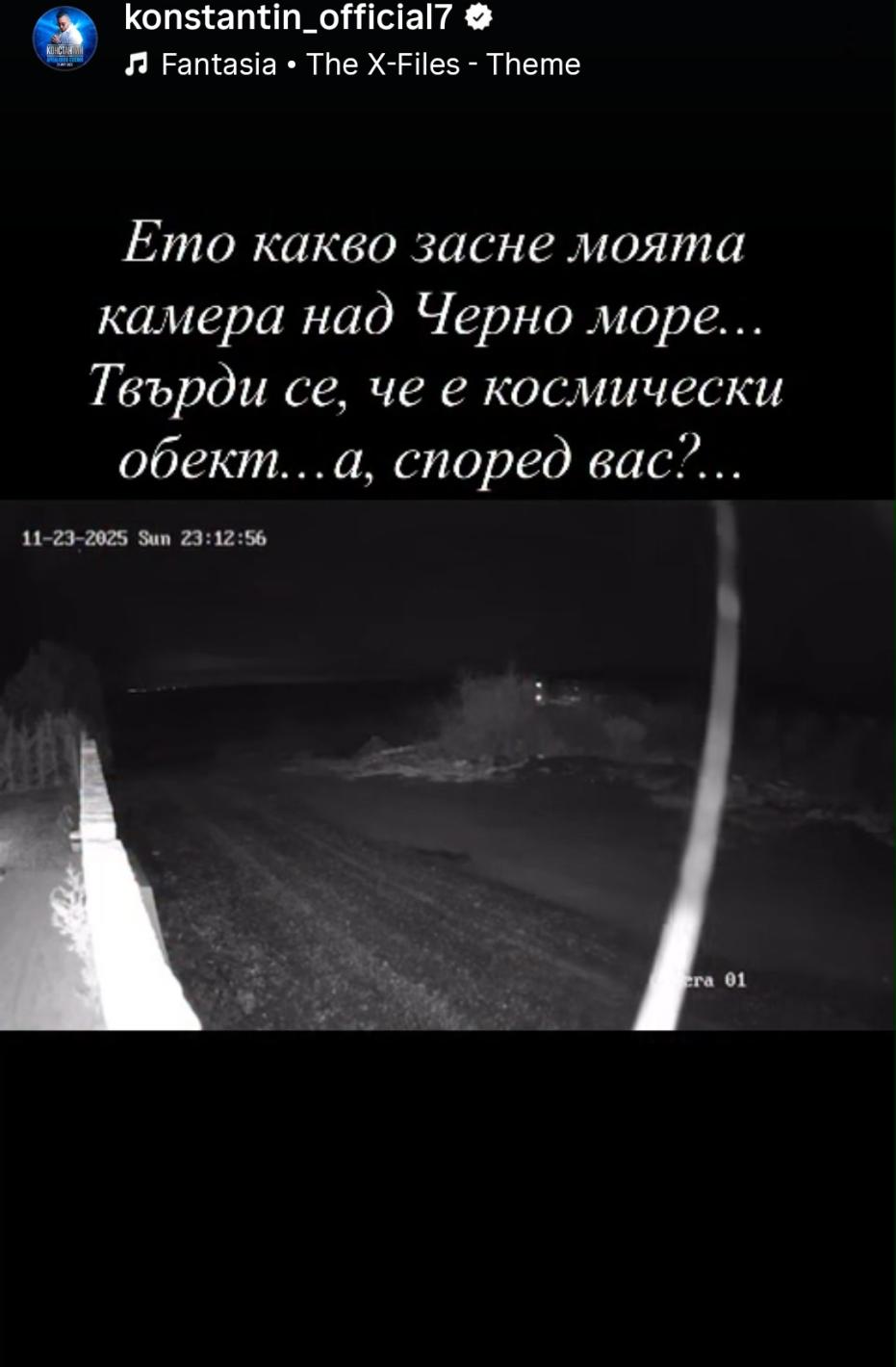 Камерата му за видеонаблюдение засне странно космическо тяло, извисяващо се над Черно море. Чалгаджията остава учуден и бързо качва видеото, питайки последователите си какво е видял.