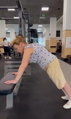 Тренировката й продължава между час и час и половина. Прави гимнастика, клекове, упражнения за гръб и лицеви опори - не на стена, а на пейка, което говори за напреднало ниво. Усмихната, с изразено чувство за самоирония, Ана често се шегува с годините си.