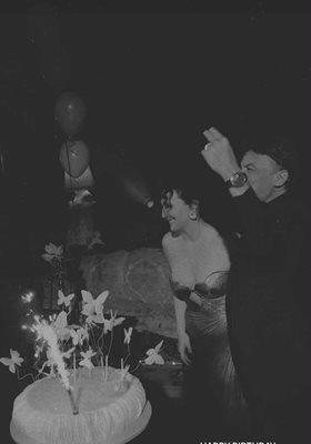 Топмоментът на вечерта бе разрязването на тортата от страна на рожденичката. Плътно до нея бе съпругът й Борислав Михайлов. Легендарният вратар отново демонстрира танцовите си умения.