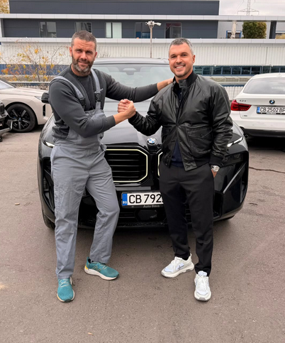 На чисто нов мощен автомобил се качи бившият футболен национал Валери Божинов. 39-годишният нападател подкара черно беемве модел ХМ.