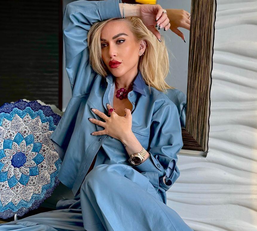 Лекарката позира в зашеметяваща фотосесия, облечена в елегантен костюм в цвета на небето.