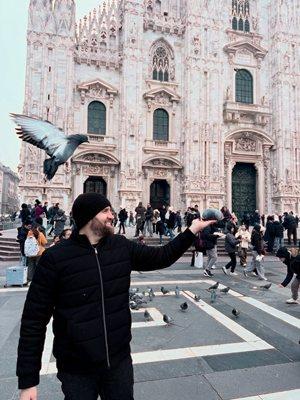 По време на новогодишната си ваканция Дънди и гаджето му посещават най-голямата забележителност в Милано - Метрополна катедрала на Рождество на Пресвета Богородица, която е символ на ломбардската столица и е обявена за национален паметник. Мястото е изключително популярно за снимки не само заради зашеметяващата си архитектура, но и заради големия брой гълъби на площада пред храма. Влюбената двойка се качва и на покрива на катедралата, каквато туристическа възможност има срещу съответното заплащане. Огромното струпване на хора в Милано по време на празниците не плаши влюбените, които чинно изчакват на опашка, за да влязат във впечатляващата сграда.