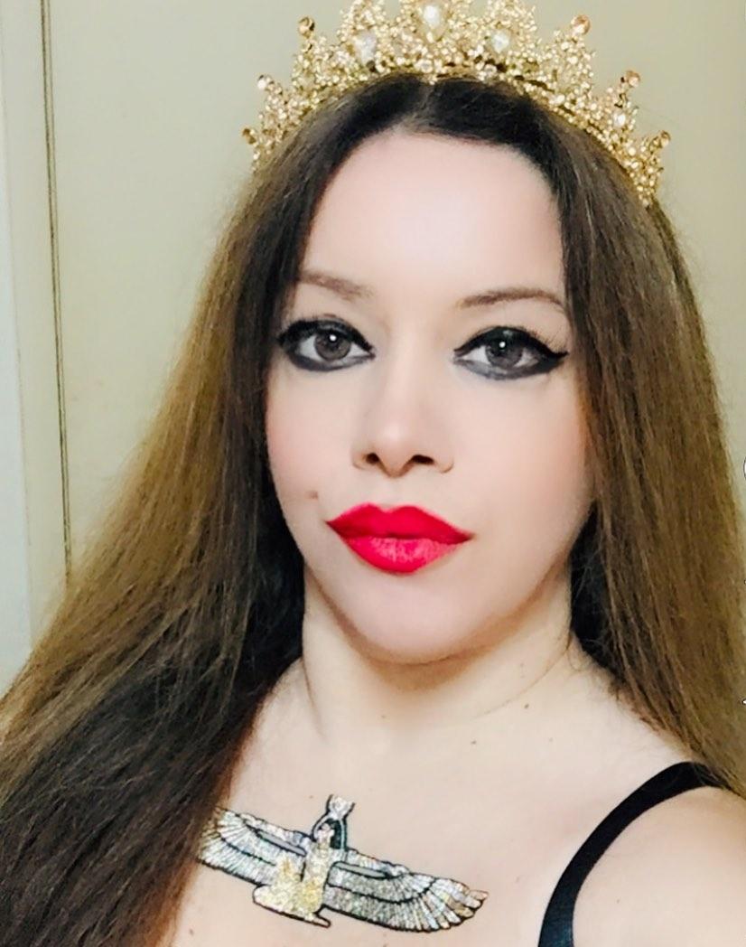 Ярко червено червило, каквото дори най-обиграните мъжемелачки в OnlyFans не биха ползвали, в комбинация с дебела очна линия, правят Елица да изглежда като представителка на чалга бранша от зората на 90-те.