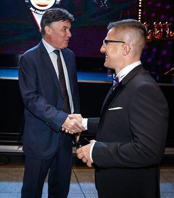 Левскарят Андрей Арнаудов се поздравява с Боби Михайлов