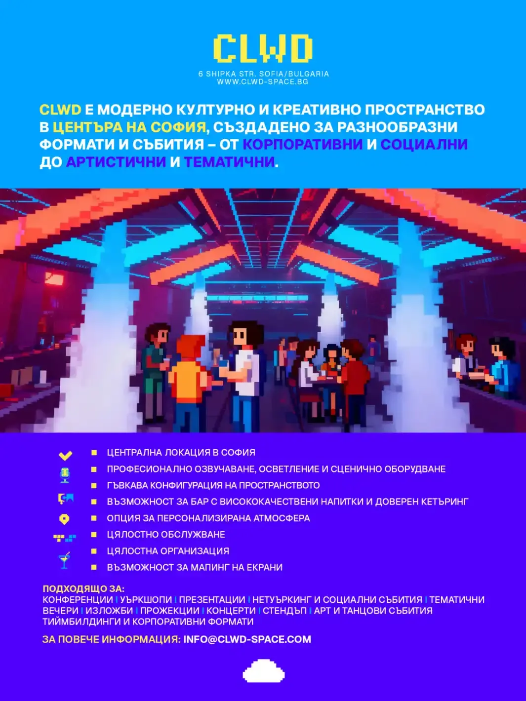 С отворена програма за нови партньорства и събития през 2026 г., CLWD е локацията, където креативността и бизнесът се срещат, а всяко събитие оживява по свой начин. Остава ти само едно – да измислиш повода, а мястото вече е ясно.