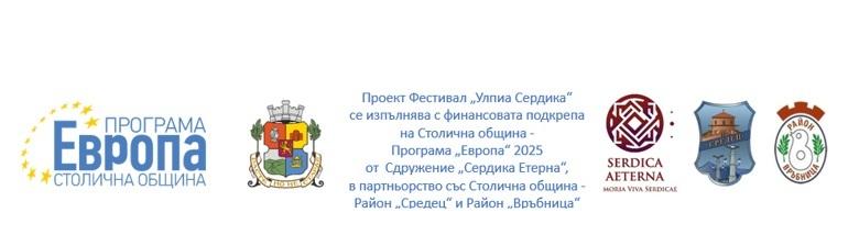 Проектът „Фестивал Улпия Сердика“ се изпълнява с финансовата подкрепа на Столична община – Програма „Европа“ 2025, от Сдружение „Сердика Етерна“, в партньорство със Столична община – район „Средец“ и район „Връбница“.