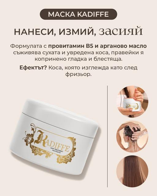 Избери маска за коса Kadiffe, която подхранва в дълбочина и прави косата по-мека, по-еластична и по-лесна за оформяне.