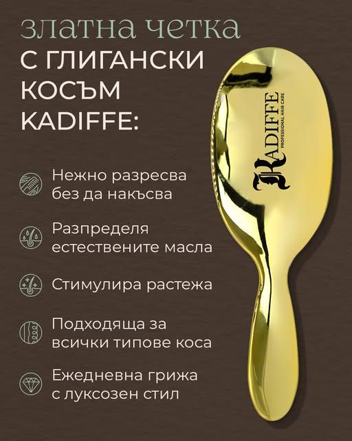 Четка с глигански косъм на Kadiffe помага за по-нежно разресване и равномерно разпределяне на естествените масла по дължината на косъма.