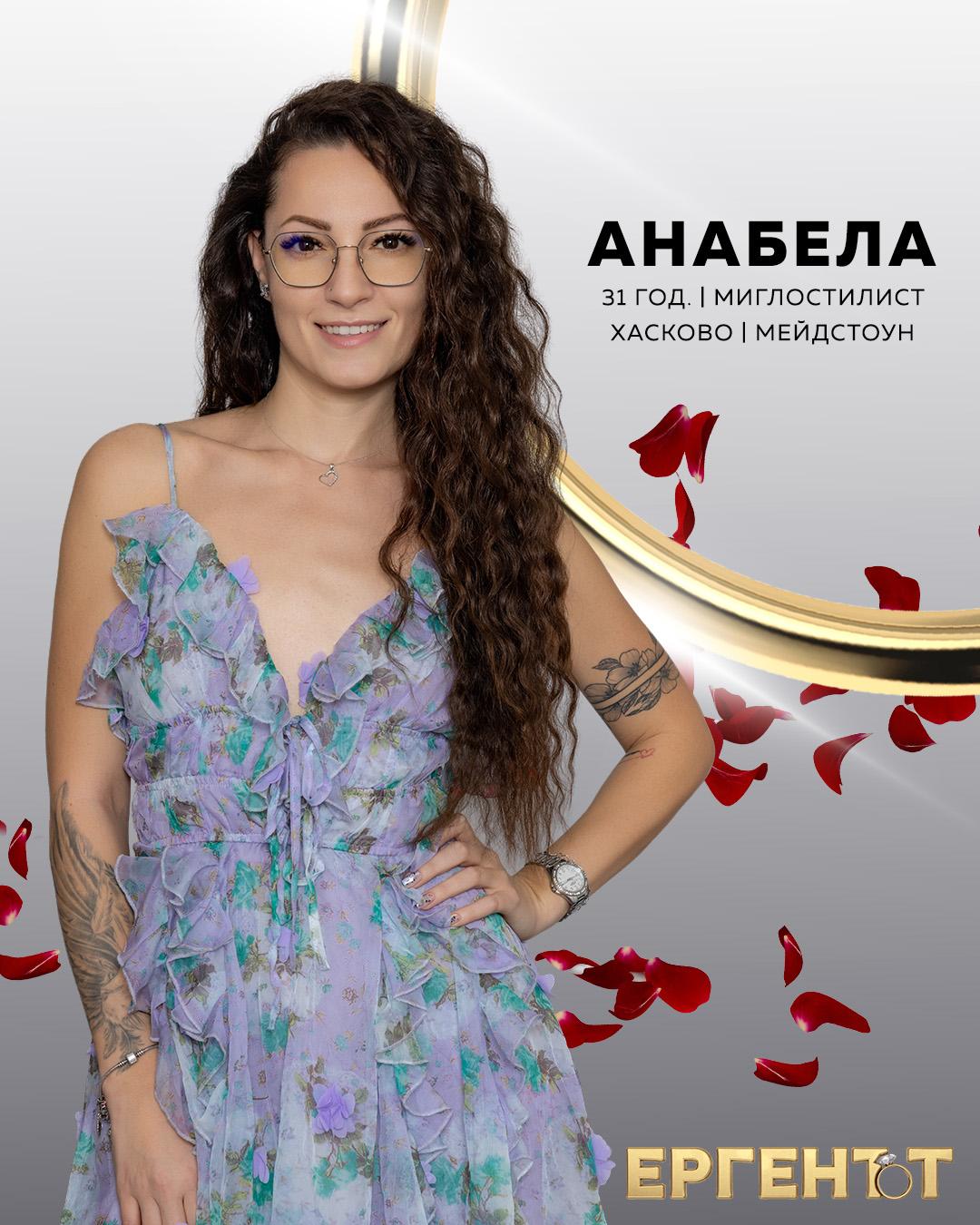 Анабела работи като миглостилист. Последните 7 години живее в Англия, където не ce страхува от работа. За да се развива и издържа сама, работи на три места. Признава, че най-много й допада Кристиян, но закъснял полет от Тайланд проваля плановете й - не се вижда с близките му. Но все пак влиза, заради Стоян.